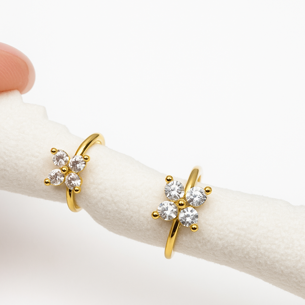 Ces boucles d’oreilles Minash plaqué or présentent un design floral délicat orné de diamants en zirconium.